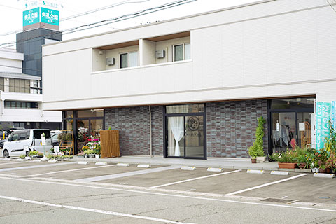 お花屋さんがあるテナントの真ん中の店舗になります。